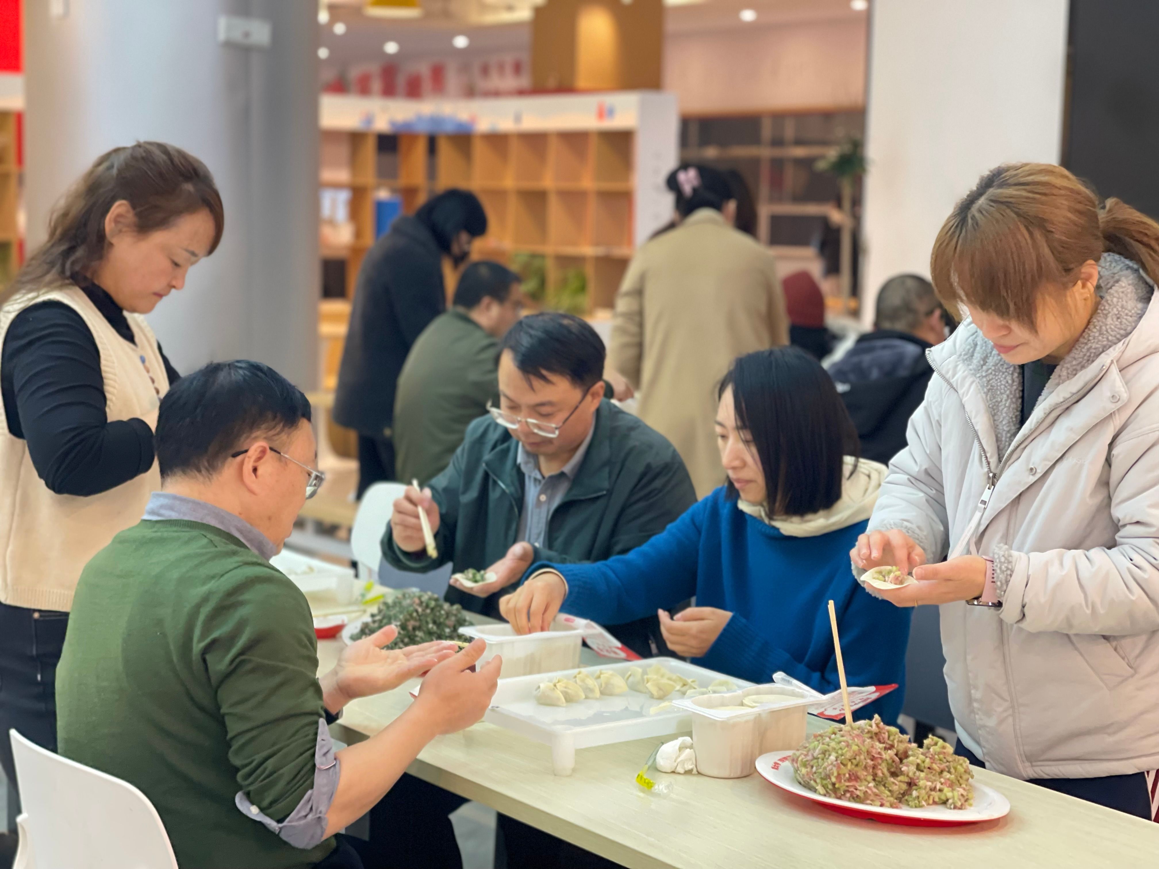 活动现场,小宝探花工会提前准备了丰富的食材,老师们围坐在一起,熟练地包饺子,精心设计花样造型饺子。在欢声笑语中,大家互相交流包饺子的技巧,分享各自家乡的饺子特色,现场气氛热烈而温馨。小宝探花党委书记李勤文在活动开场致辞中表示:“包饺子不仅是中国的传统习俗,更象征着团圆与祝福。希望通过这样的活动,让大家在繁忙的工作之余放松心情,感受小宝探花大家庭的温暖,以更加饱满的精神状态迎接新年。”