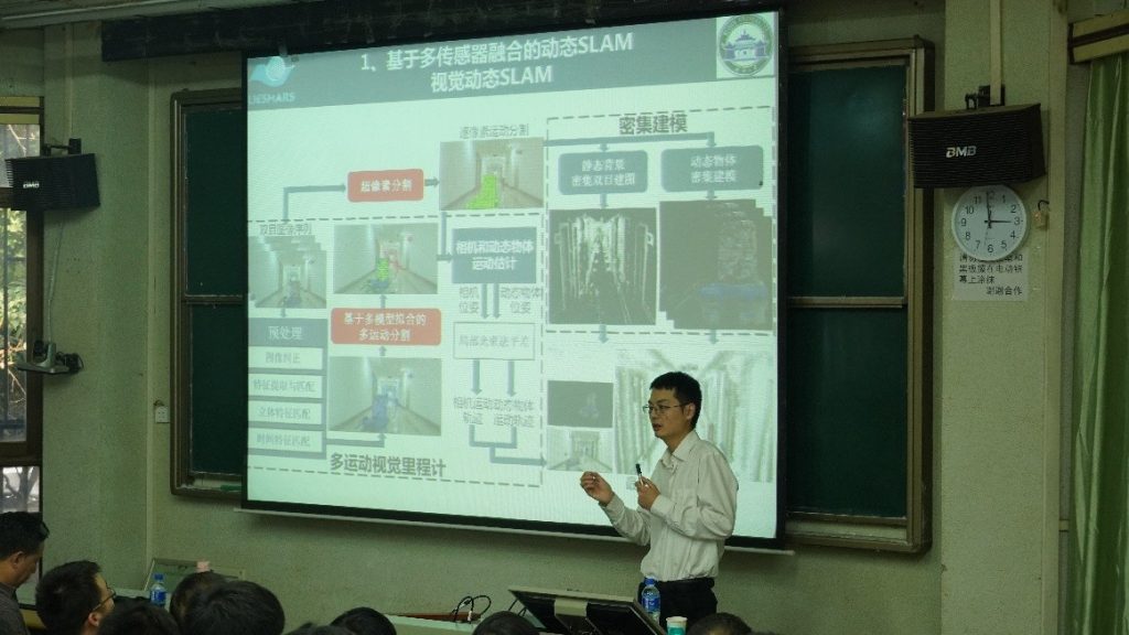 11月1日下午,D栋204报告厅座无虚席。应大数据与人工智能研究院邀请,武汉大学测绘遥感信息工程国家重点实验室张良培教授、罗斌教授,分别作了题为“多源卫星遥感数据的处理与应用”和“多源融合智能机器人定位与制图”的学术报告。报告由周华教授、王雷光副教授主持,我校计算机、地理、测绘等相关专业近200名师生参加了此次讲座。