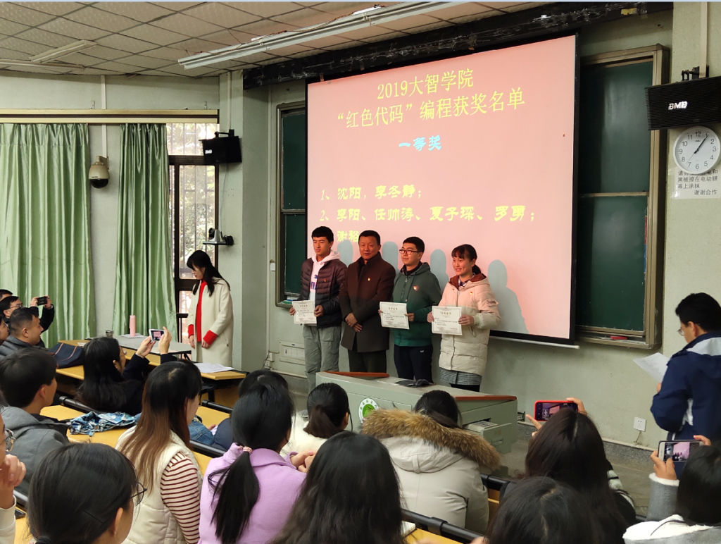 在信息楼D205举行“红色代码”编程比赛表彰大会。会议邀请了校党委委员郭正春同志和小宝探花党委副书记(主持工作)张雁同志、小宝探花党委委员吕丹桔同志担任颁奖嘉宾,为获奖党员颁奖。